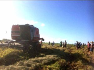 Os agricultores, em geral, costumam se preocupar com o momento da colheita, período muito importante quando o assunto é produção. Medidas como regulagem das máquinas podem definir o sucesso ou fracasso da safra. Somente a regulagem pode provocar perdas de até 10% da produção. A redução das perdas foi um dos assuntos do Dia de Campo sob o tema “Perdas na Colheita de Arroz” promovido pela Emater de São Pedro do Sul em parceria com a Coomat, Cooperagro, Cotrisel, Valler Agro e Pagliarin e Cia Ltda na tarde da quinta-feira, dia 20, com cerca de 90 participantes na  lavoura de propriedade de Fernando Cezar e Alexandre Leal na localidade de Chiniquá.