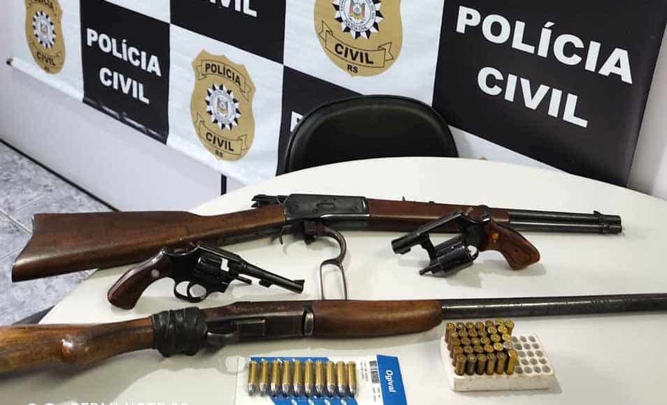 Nesta quinta feira (26/5), agentes da DP/São Pedro do Sul efetuaram a apreensão de quatro armas de fogo em cumprimento a um mandado de busca no interior de Jari, estrada Jari/Quevedos. Dois revólveres (calibres 32 e 38) e duas armas longas (uma carabina calibre .38 e uma espingarda). Além disso foram apreendidas 41 munições calibre 38.
