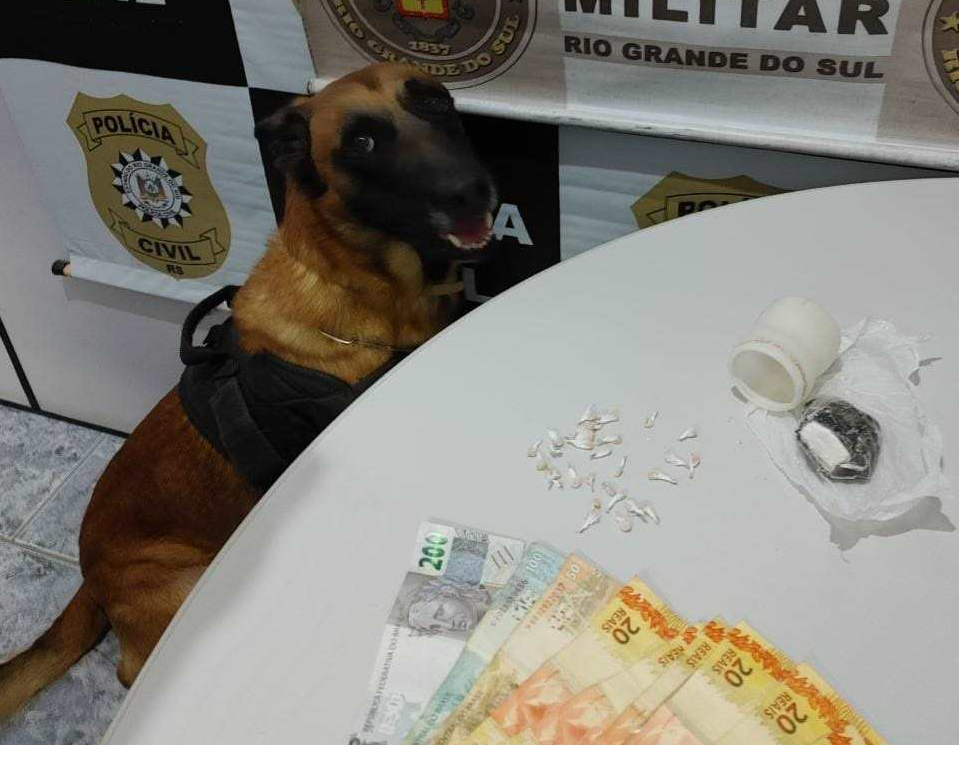 Na manhã desta quinta-feira (01), a Polícia Civil de São Pedro do Sul, com o apoio de Unidade Canina da Brigada Militar do 2ºBPChoq, prendeu em flagrante, P.C.B, 62 anos e apreendeu 42g de cocaína, 29 pedras de crack fracionadas em embalagem para venda, além da quantia de R$ 597,00.