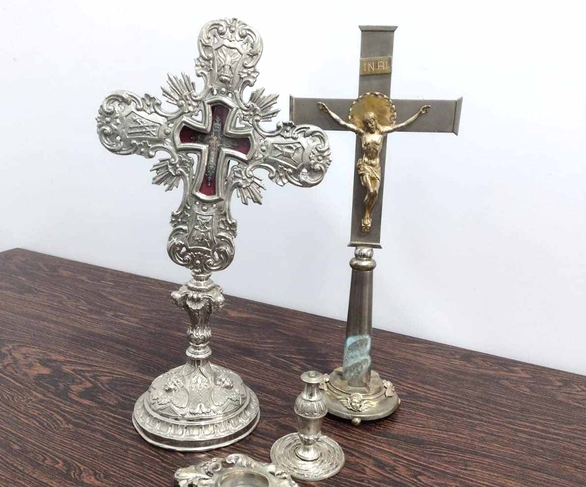 Caso um morador identifique como sendo de sua propriedade, deve procurar a delegacia até o próximo dia 26, quando os bens, uma panela, peças de máquinas e símbolos religiosos, deverão ser descartados. Veja abaixo: