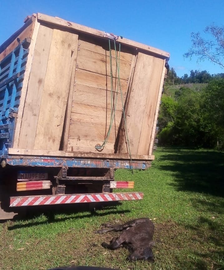 Em um dos casos, o caminhão utilizado pelos abigeatários estragou em uma propriedade na localidade de Cerro Baltasar. Foto: Gazeta Hoje