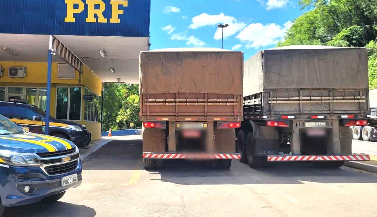 No início da tarde dessa sexta-feira (16), a Polícia Rodoviária Federal apreendeu três caminhões que trafegavam pela BR 158 com as placas de identificação iguais.