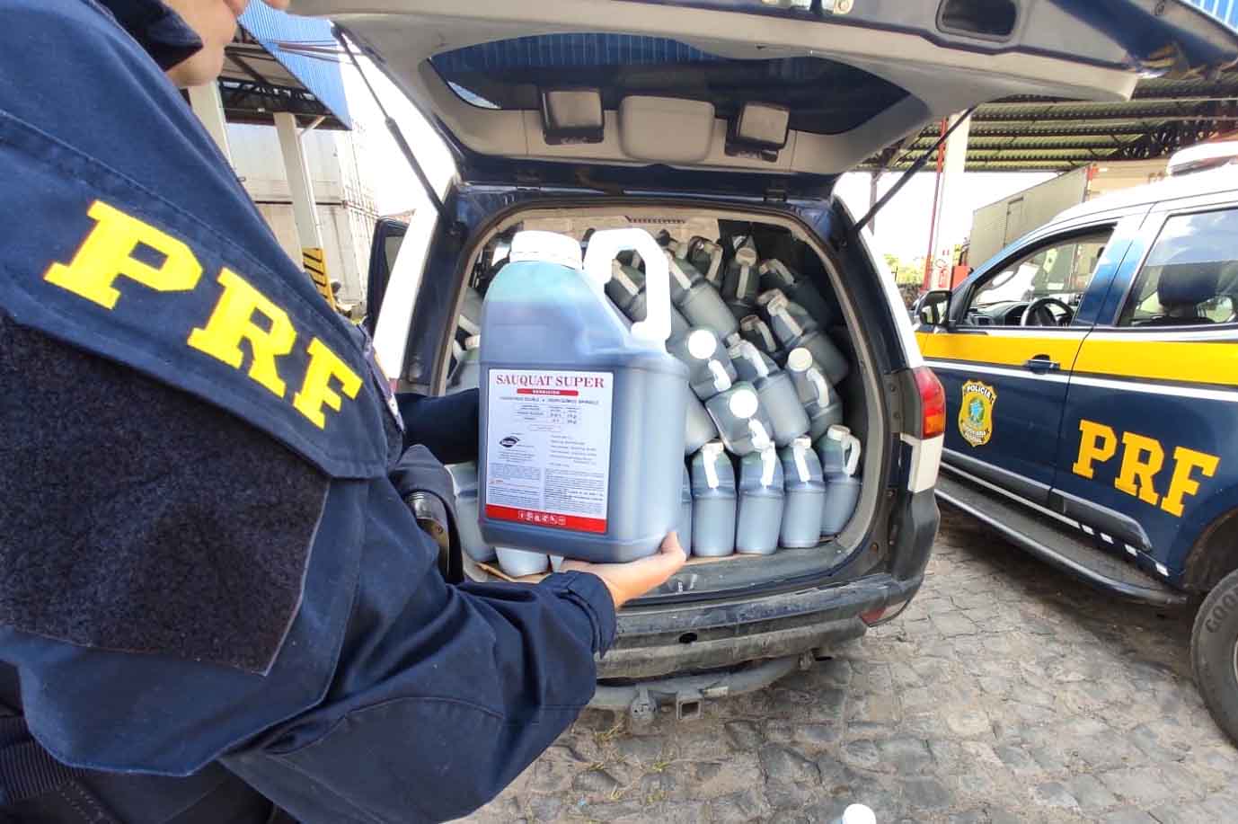 Ao vistoriar o interior do veículo, os policiais encontraram 100 galões de herbicida de uso proibido no Brasil, os quais totalizavam a quantidade de 500 quilos. Este produto é proibido no Brasil, pois causa riscos tanto ao meio ambiente quanto à saúde humana.