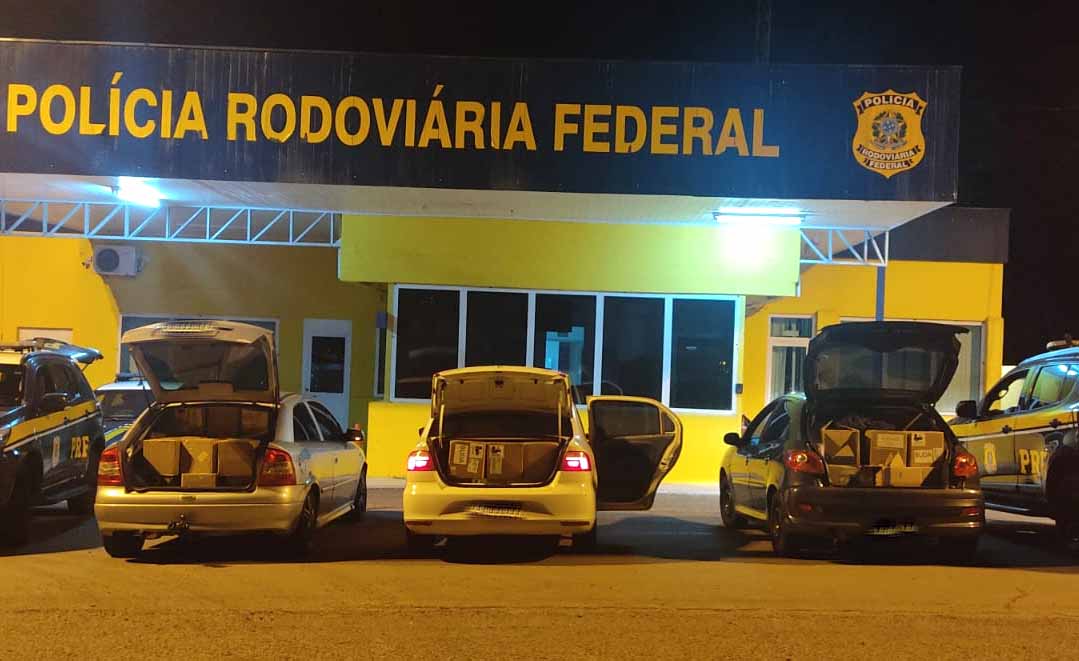Na madrugada desta segunda-feira, 14, na BR 290 em Caçapava do Sul, a Polícia Rodoviária Federal apreendeu um comboio de três veículos completamente carregados com mercadorias contrabandeadas do Uruguai.