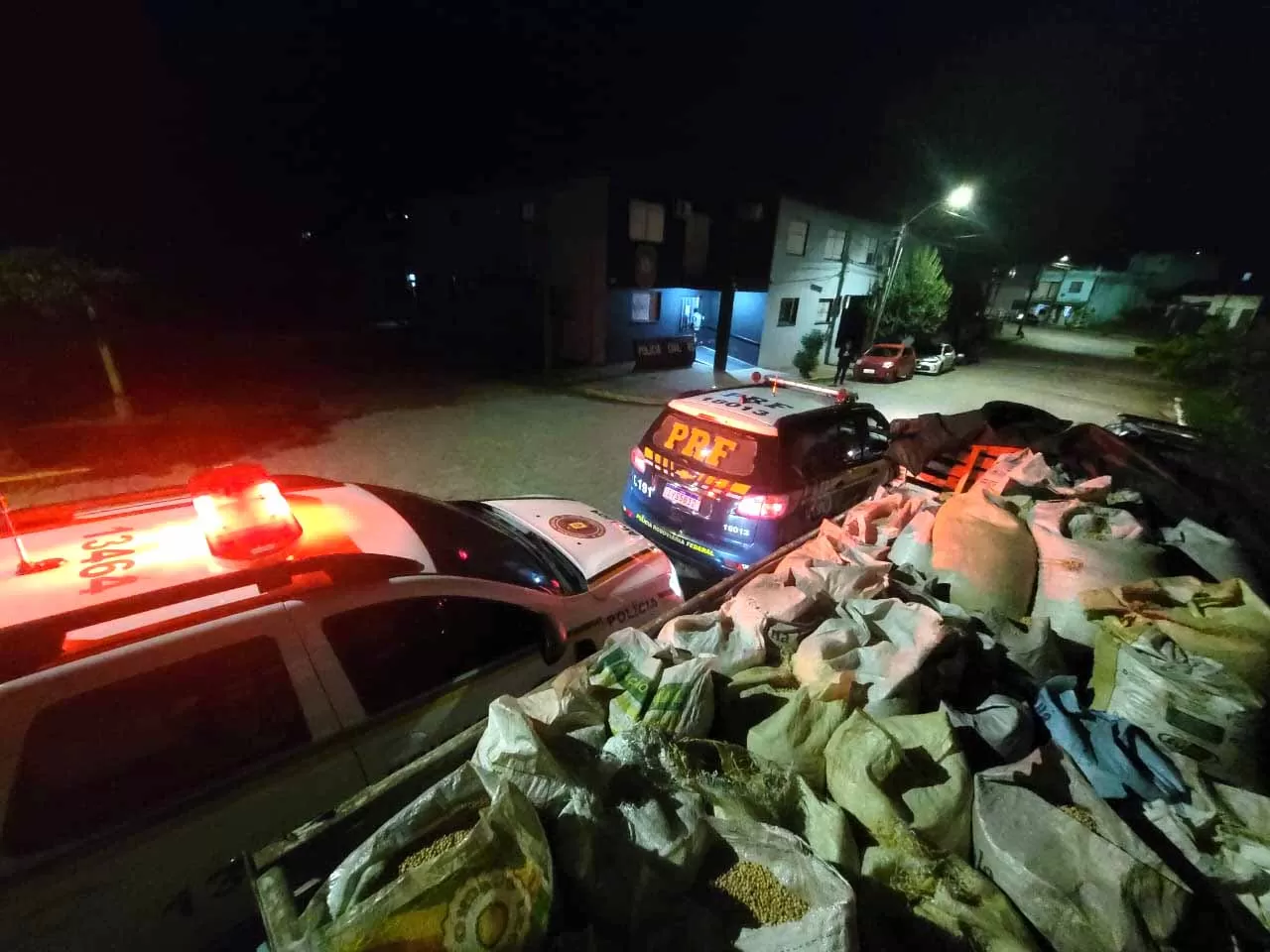 Na noite desta terça-feira (11), na BR 392 em Canguçu, a Polícia Rodoviária Federal prendeu três criminosos e recuperou parte de carga de soja que havia sido furtada de um bitrem durante a madrugada. A ação contou com o apoio da Brigada Militar.