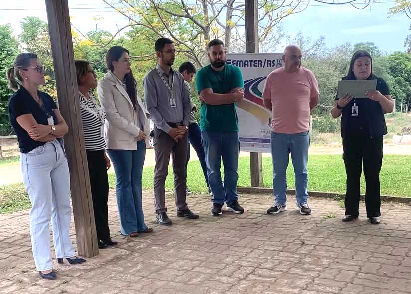 A extencionista da Emater, Daiane Mattos, a secretária de Agricultura e Meio Ambiente Regina Hernandes, a procuradora do Município, Mariane Braibante, o vice-prefeito Bruno Pinheiro, o secretário de Desenvolvimento Social Maiquel Marconatto, o vereador Kinha e a diretora do CRAS, Dafne Pinheiro, acompanharam o lançamento do programa na tarde desta quinta-feira. Foto: Divulgação / PMSPS