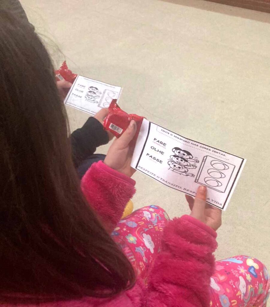 Nas palestras ministradas pela SD Eduarda e o SD Leadro Vitor, os estudantes aprendem sobre o uso correto do cinto de segurança e cadeirinhas em veículos, da faixa de travessia de pedestres e semáfaros, entre outras situações. Os policiais estão em formação no Curso Superior de Tecnologia em Segurança no Trânsito.