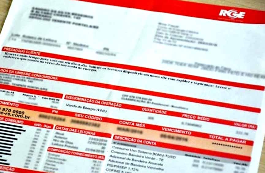 Contas de julho trarão isenção de ICMS sobre uma parte da tarifa (TUSD) e alíquota limitada a 17% para o restante da conta. Foto: Reprodução RGE