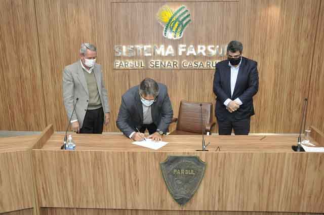 Foi assinado no início da tarde da segunda-feira (4/10), na sede da Farsul, o seguro do rebanho bovino gaúcho para caso de ocorrência de focos de febre aftosa. Trata-se do primeiro seguro de pecuária contra a febre aftosa em todo o mundo, conforme o representante da seguradora Fairfax, Ricardo Sassi.