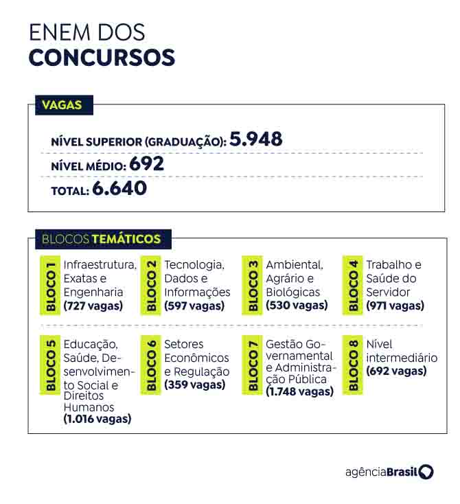 Já à tarde, os candidatos dos blocos de nível superior responderão a 50 questões objetivas de múltipla escolha, de conhecimentos específicos. Enquanto os inscritos no bloco de nível médio farão mais 40 questões objetivas de múltipla escolha. As provas para o nível médio não incluem questões dissertativas.