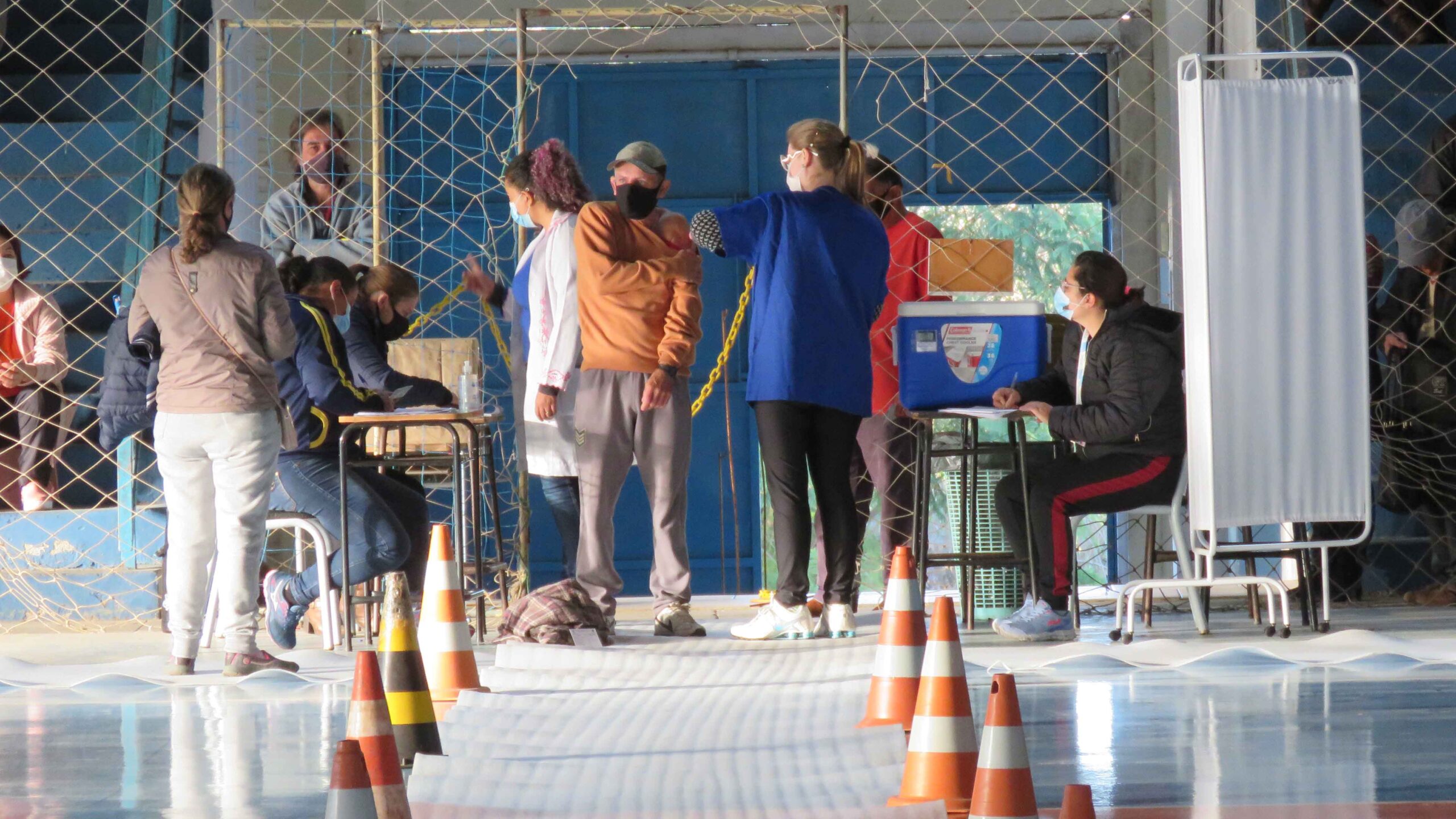 A vacinação contra a Covid-19 segue em São Pedro do Sul nesta semana no Ginásio Municipal de Esportes. Na segunda-feira (14), Um total de 264 moradores entre trabalhadores de limpeza urbana e indústrias e pessoas com 56 anos ou mais, sem comorbidades. receberam a primeira dose do imunizante.
