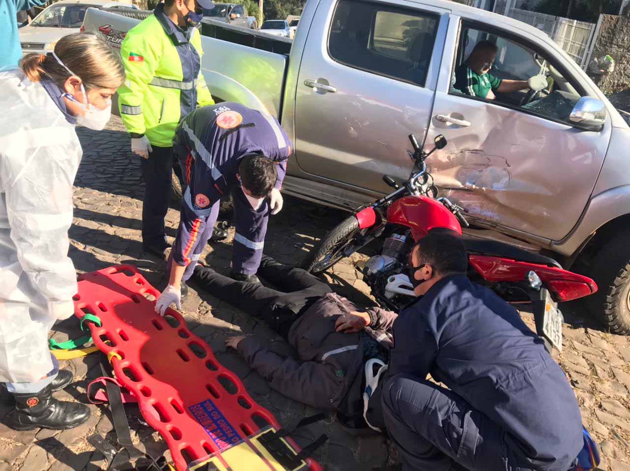 O SAMU e o Resgate do Corpo de Bombeiros foi acionado e o piloto da moto foi levado para atendimento médico no PAM de São Pedro. O motorista da caminhonete não se feriu.