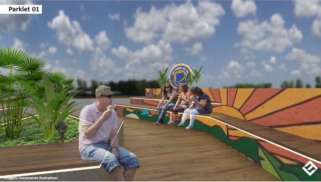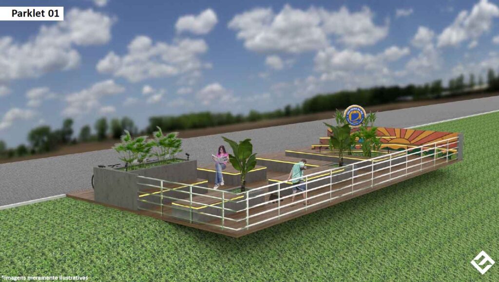 O projeto prevê a implantação em 4 etapas, uma vez que dividido em quatro elementos arquitetônicos distintos, a serem desenvolvidos nesta ordem: pórtico de acesso, mirante do dinossauro, parklet 01 e parklet 02 (imagens abaixo).