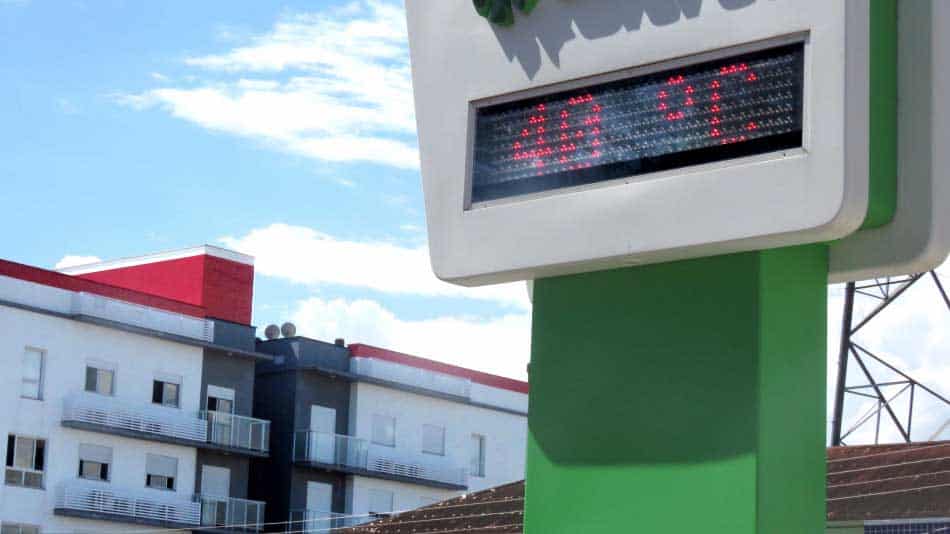 Uma massa de ar quente segue sobre o estado trazendo dias escaldantes em diversos municípios do Estado com marcas que superam os 40ºC. Em São Pedro do Sul e região não é diferente. Nesta sexta-feira o termômetro da Praça Crescêncio Pereira marcava 40ºC por volta das 15h.