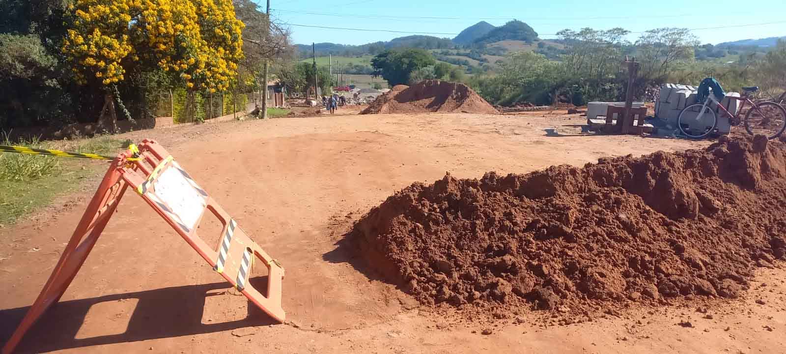 A interrupção é devido a continuidade dos serviços de calçamento realizados pelos servidores da empresa CS Terraplanagem e outras obras de infraestrutura.