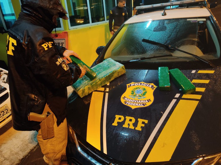 Em uma operação com a participação do serviço de inteligência da PRF, os policiais abordaram dois automóveis. O primeiro, um Onix de Eldorado do Sul, era conduzido por um homem de 22 anos, natural de Cascavel-PR, já com ocorrências por posse de drogas.