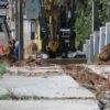 Com intenso trânsito de caminhões, os moradores da rua sofrem com o excesso de poeira em suas residências.