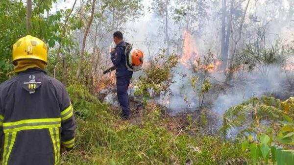 Os bombeiros trabalham para evitar que as chamas atinjam residências próximas ao local. Veja os vídeos.