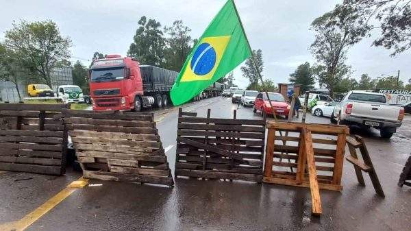 Segue na tarde desta segunda-feira, 31, a manifestação iniciada no final da manhã por eleitores pró-Bolsonaro em São Pedro do Sul após o resultado...