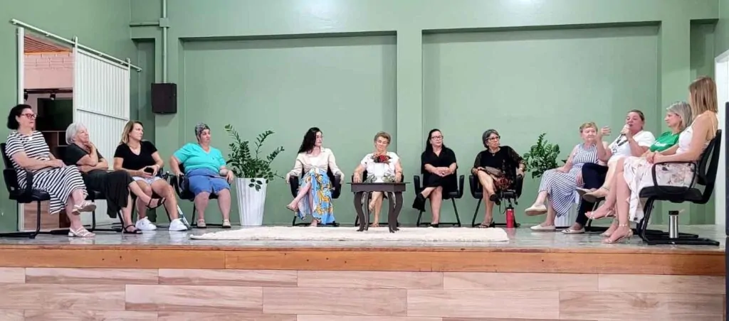Na sequência, foi realizada uma roda de conversa que contou com a participação de dez mulheres voluntárias. Elas compartilharam suas histórias e experiências de vida, promovendo um espaço de troca, acolhimento e fortalecimento entre as presentes.