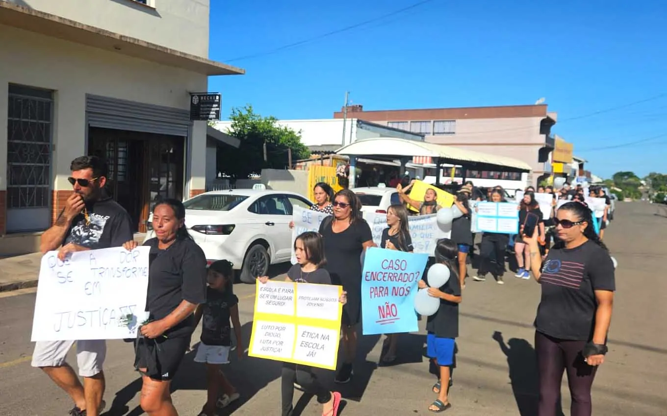 A concentração ocorreu às 16h30, em frente à Igreja Matriz. O trajeto passou pela Delegacia de Polícia, pela Escola Estadual de Educação Básica Tito Ferrari — onde o jovem estudava — e seguiu até a Avenida Walter Jobim, local do crime.