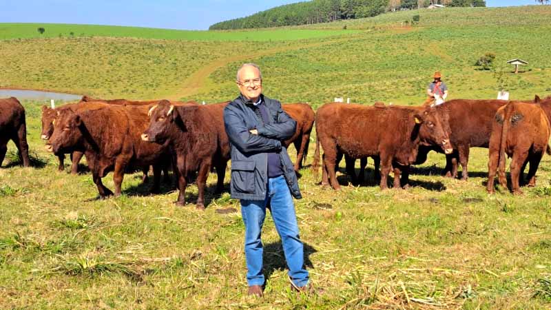 O pecuarista foi supervisor regional da Secretaria da Agricultura, Pecuária e Desenvolvimento Rural (Seapdr) nos municípios de Nova Prata e Lagoa Vermelha, e servidor do órgão de 1982 a 2017, e hoje coordena a Câmara Setorial da Pecuária de Corte. Ele conta que, na década de 1940, o avô começou a participar das exposições do Menino Deus, de onde surgiu a Expointer. “De lá pra cá a família sempre participou ininterruptamente”, diz com orgulho. “Além disso, meu pai e meu avô sempre compareciam às exposições de Santa Catarina (em Lages, Chapecó, Bom Jardim da Serra, São Joaquim). E tivemos que parar em 2000, por conta do foco de aftosa que ocorreu em Joia, aqui no Estado”.