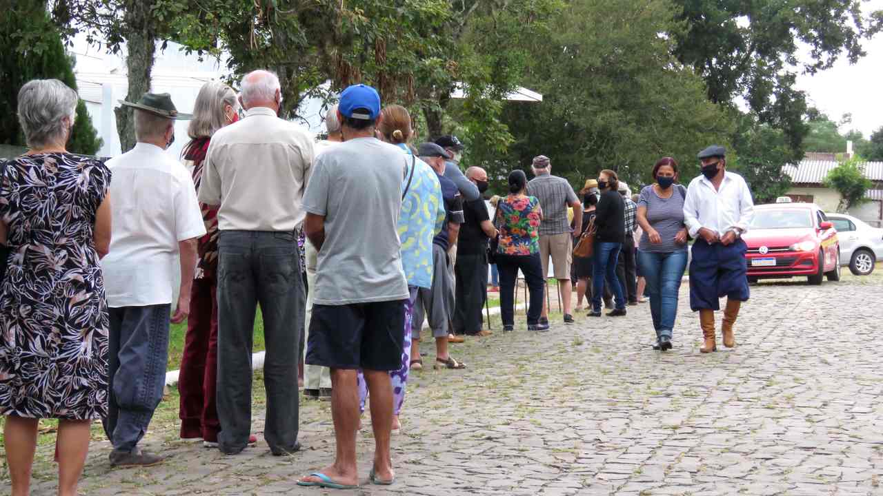 Na quinta-feira foram vacinados idosos acima de 77 anos. No inicio da manhã chegou a se formar fila em frente a AABB.