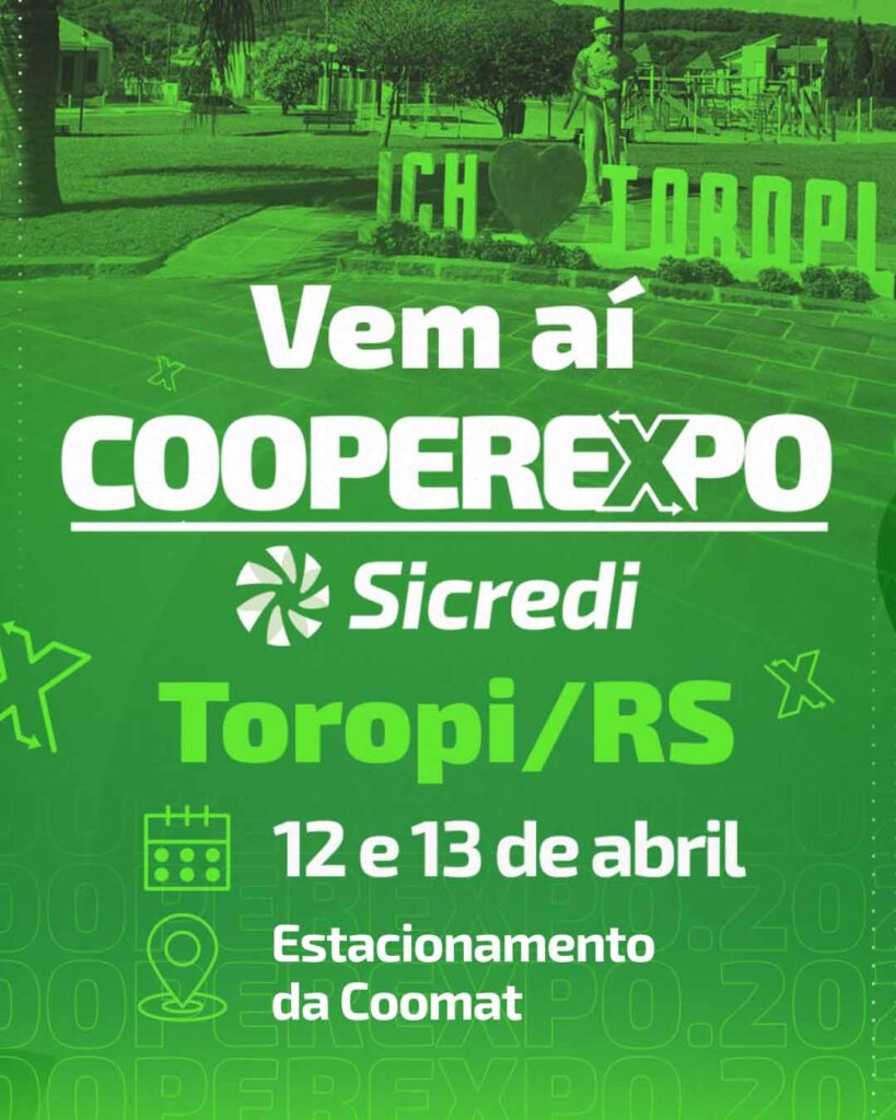 Toropi se prepara para receber a CooperExpo Sicredi, marcada para os dias 12 e 13 de abril, no estacionamento da Coomat. O evento é uma oportunidade ímpar para negócios e interação com a comunidade local e tem como objetivos contribuir com a movimentação econômica, valorizar os parceiros e fomentar a compra de produtos e serviços dos associados de Toropi.