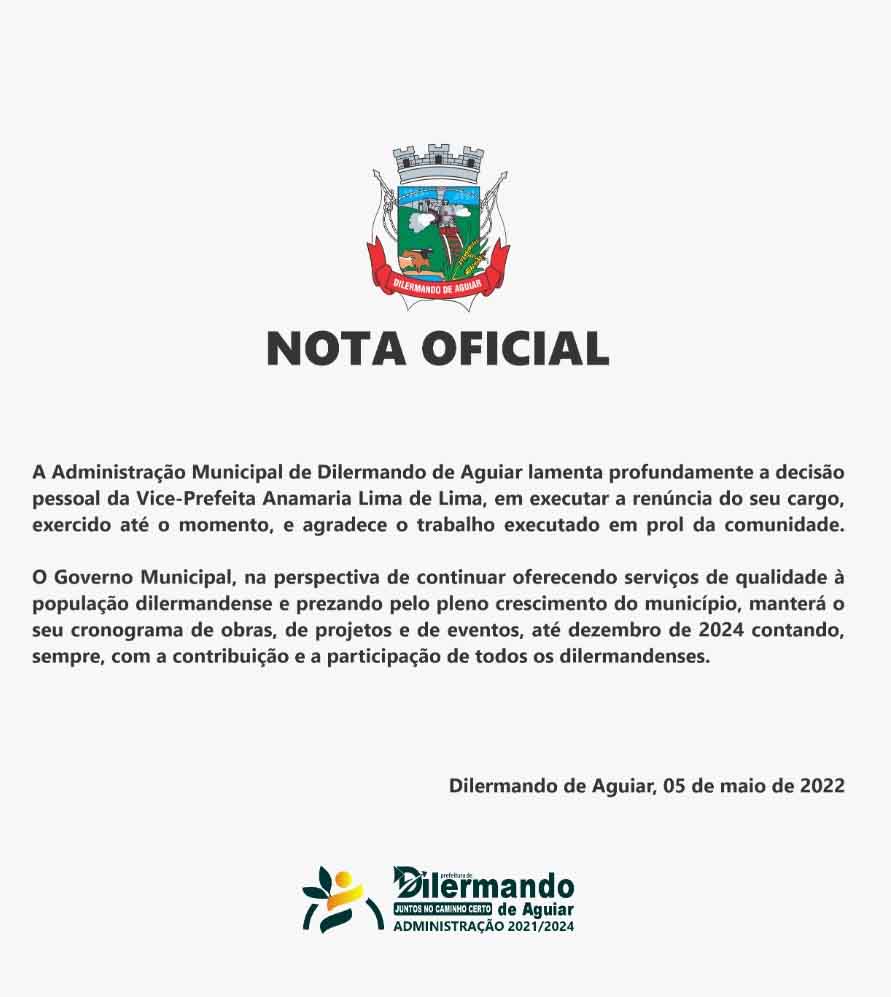 Na manhã desta quinta-feira (5/5), a prefeitura divulgou nota se manifestando sobre a renúncia da ex-vice-prefeita