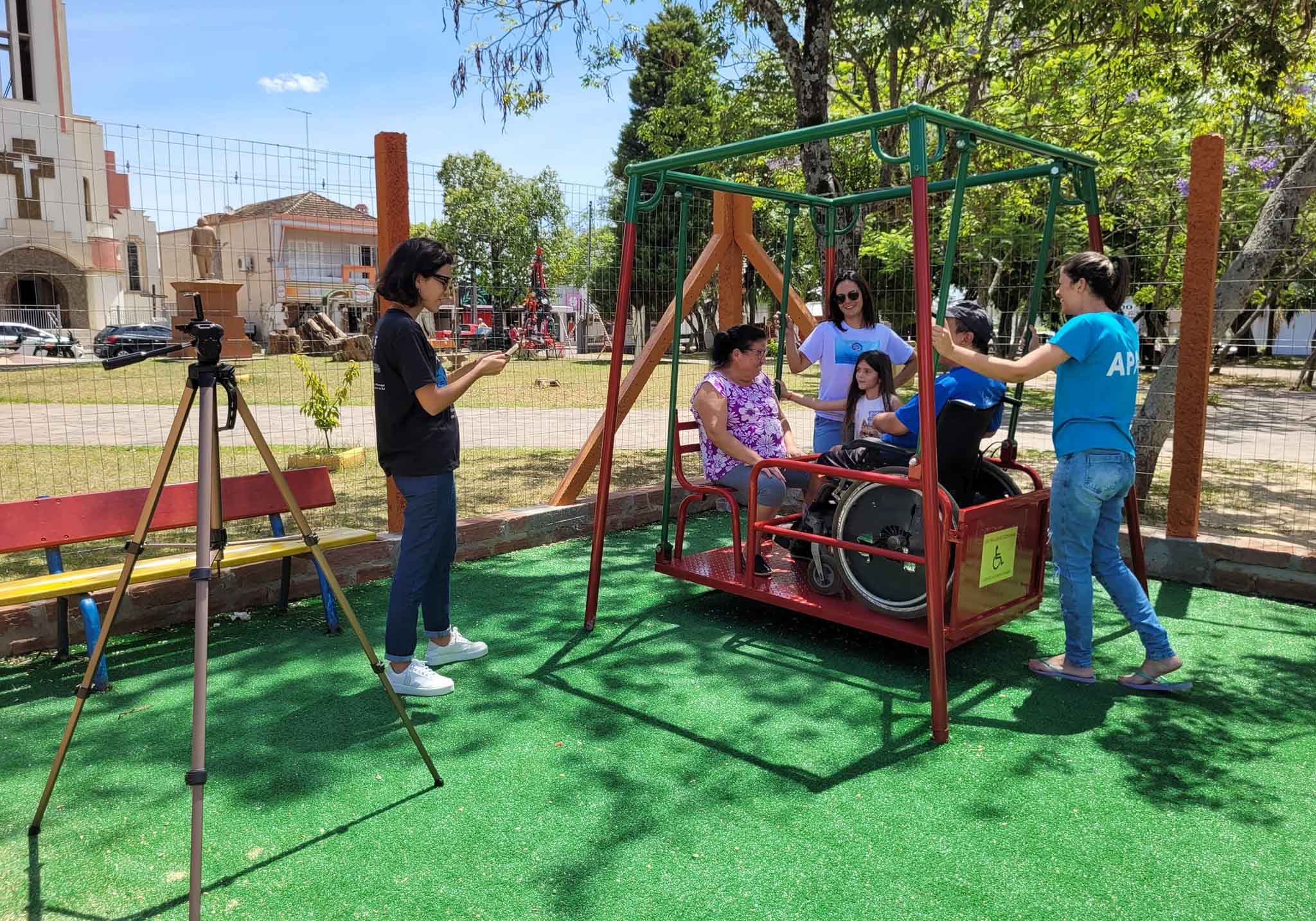 O Departamento de Cultura da prefeitura de São Pedro do Sul em parceria com a APAE iniciou na tarde da quinta-feira (22), a produção de vídeos informativos sobre o uso correto dos brinquedos destinados para o uso de cadeirantes na Pracinha Arco-Íris, recém inaugurada na Praça Crescêncio Pereira, centro da cidade.